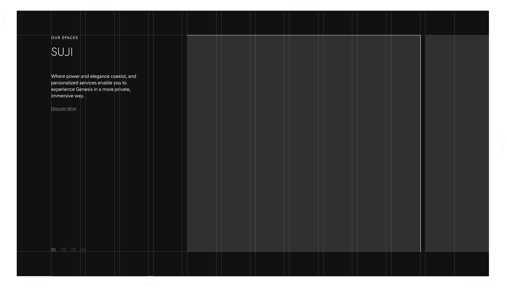 Each Genesis Space had a distinct architectural identity, but the old website failed to capture texture, materiality, or emotional tone.